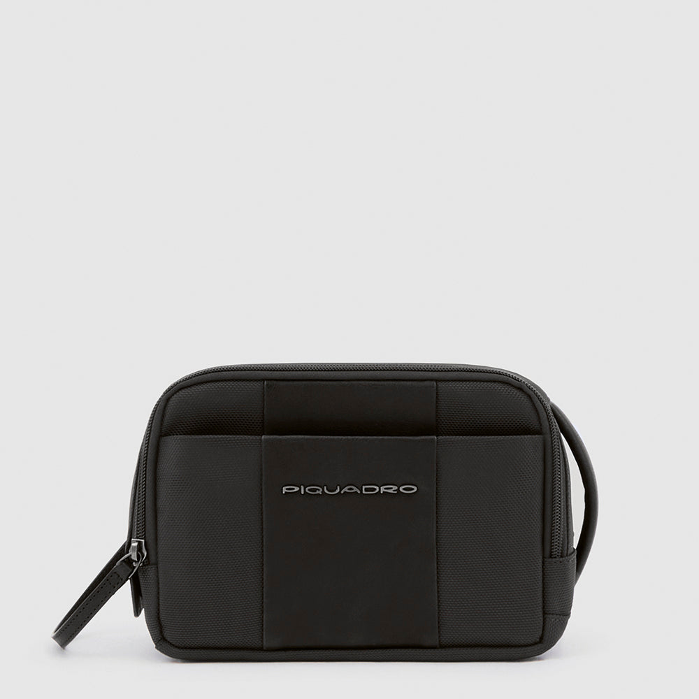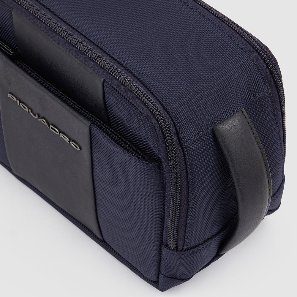 Kulturbeutel aus recycled Stoff und Leder mit zwei Fächern