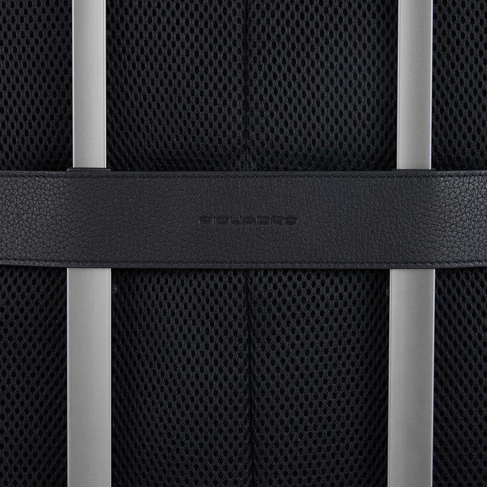 Slim laptop and iPad® backpack in leather with anti-theft cable, RFID and shock absorbing protection
