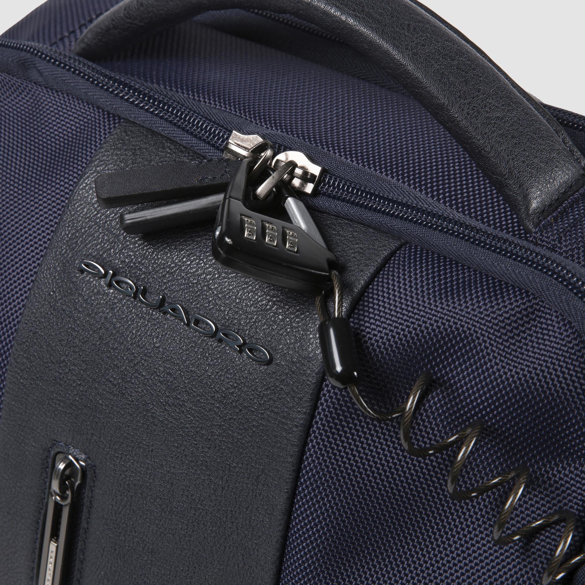 Laptop backpack in recycled textile and leather with iPad® compartment, anti-theft cable, shock absorbing and RIFD protection, pocket for AirPods®