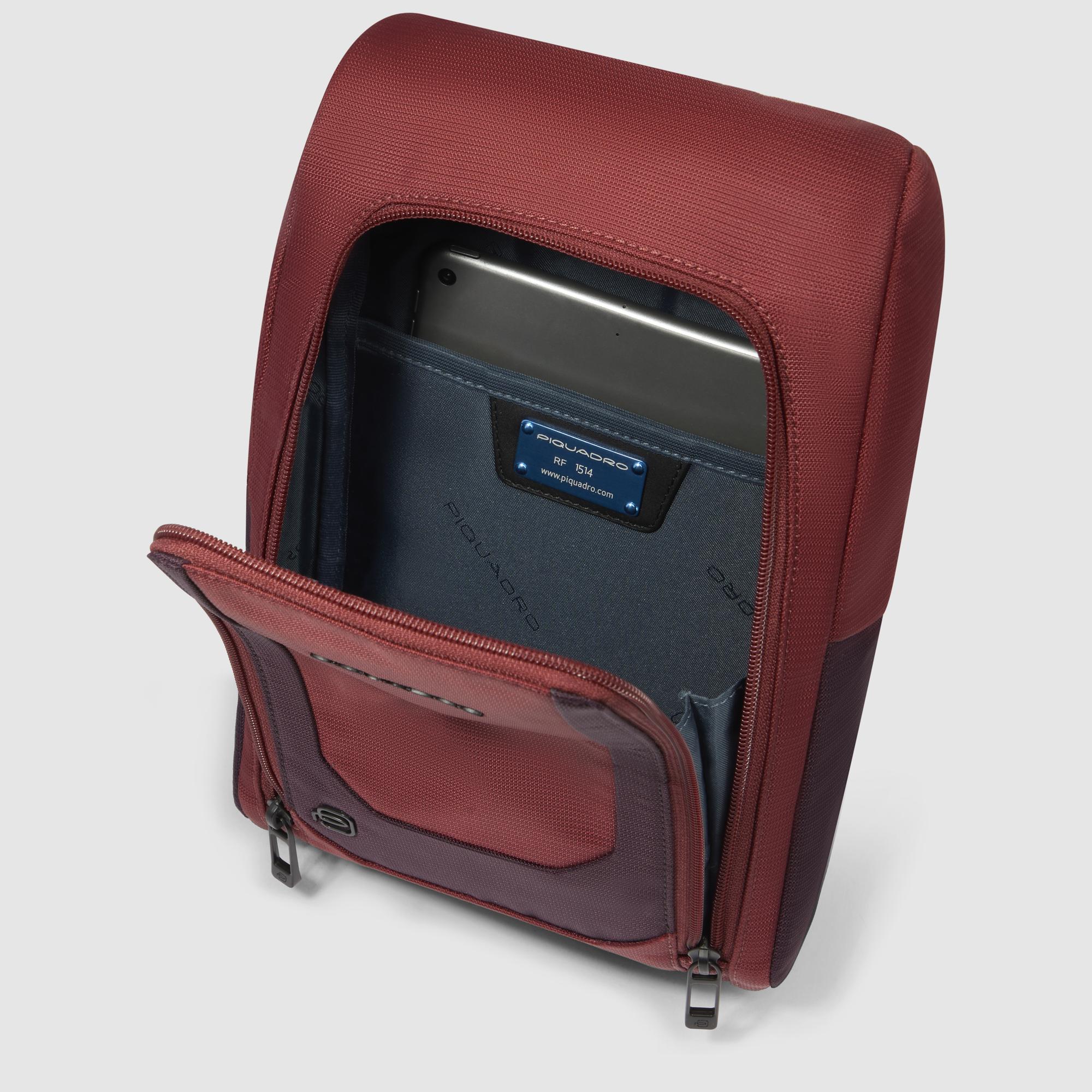 Sling bag in recycled fabric and leather for iPad®mini with RFID protection