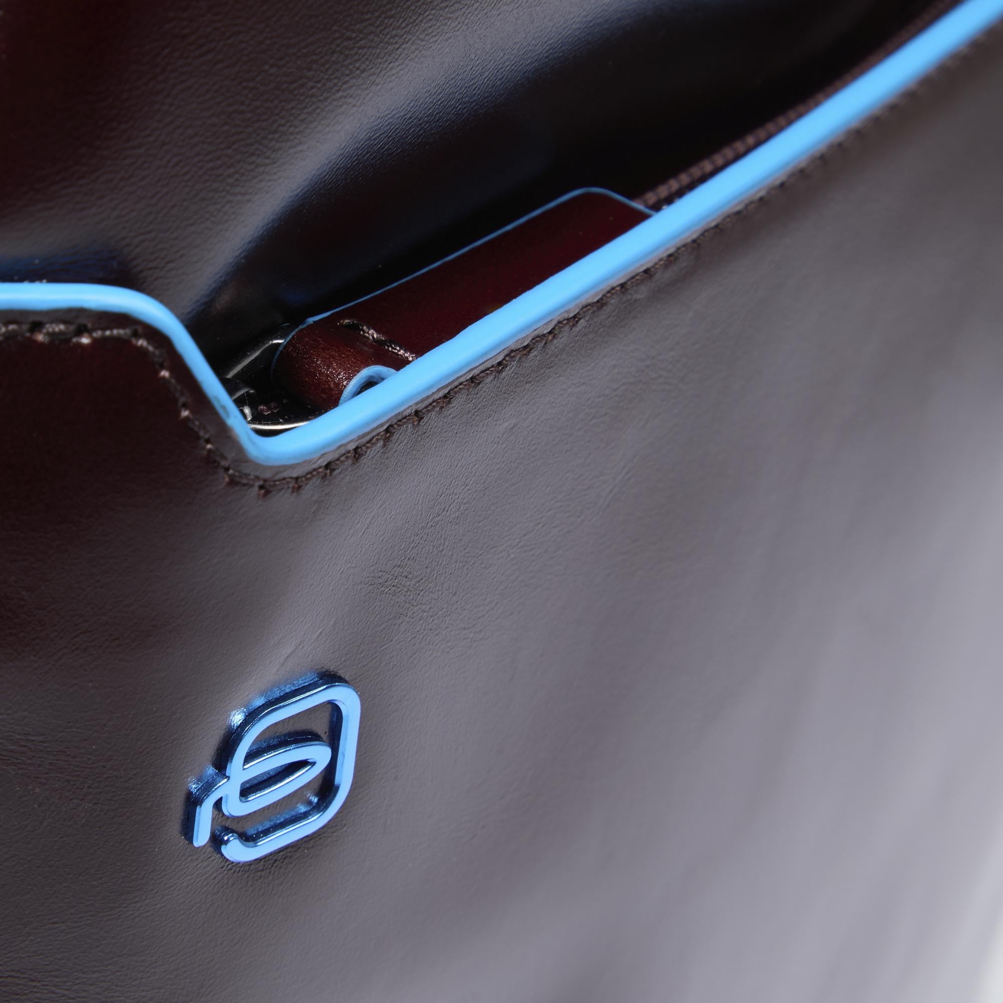The Blue Square collection is made of tanned calfskin. This traditional tanning method maintains the beauty of the leather over the years. The raw cut edges that are hand-painted in blue enliven the business character of the collection and are a highly recognisable distinctive element.
