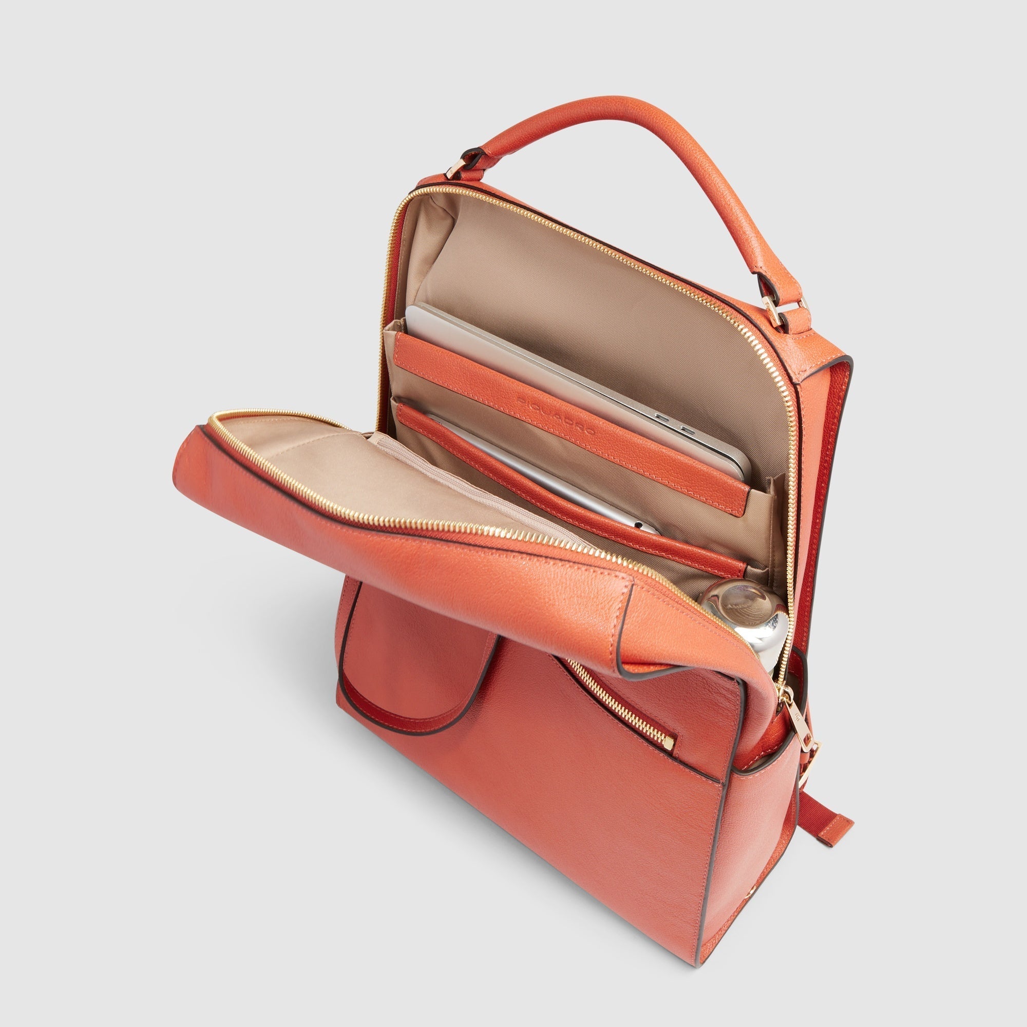 Women’s laptop backpack in leather with iPad® compartment, pockets for AirPods® and CONNEQU 4.0, shock absorbing and RFID protection