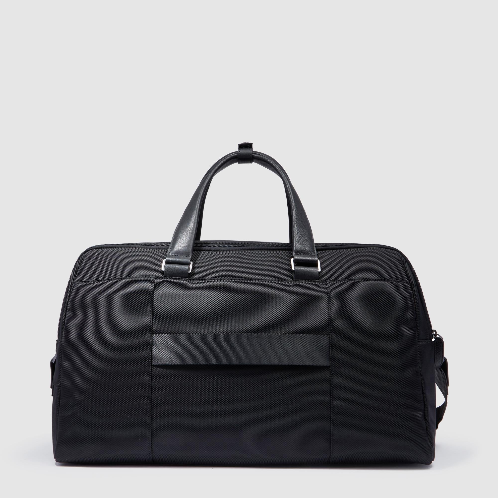 Small size, duffel bag in recycled textile with pocket for AirPods® and trolley strap