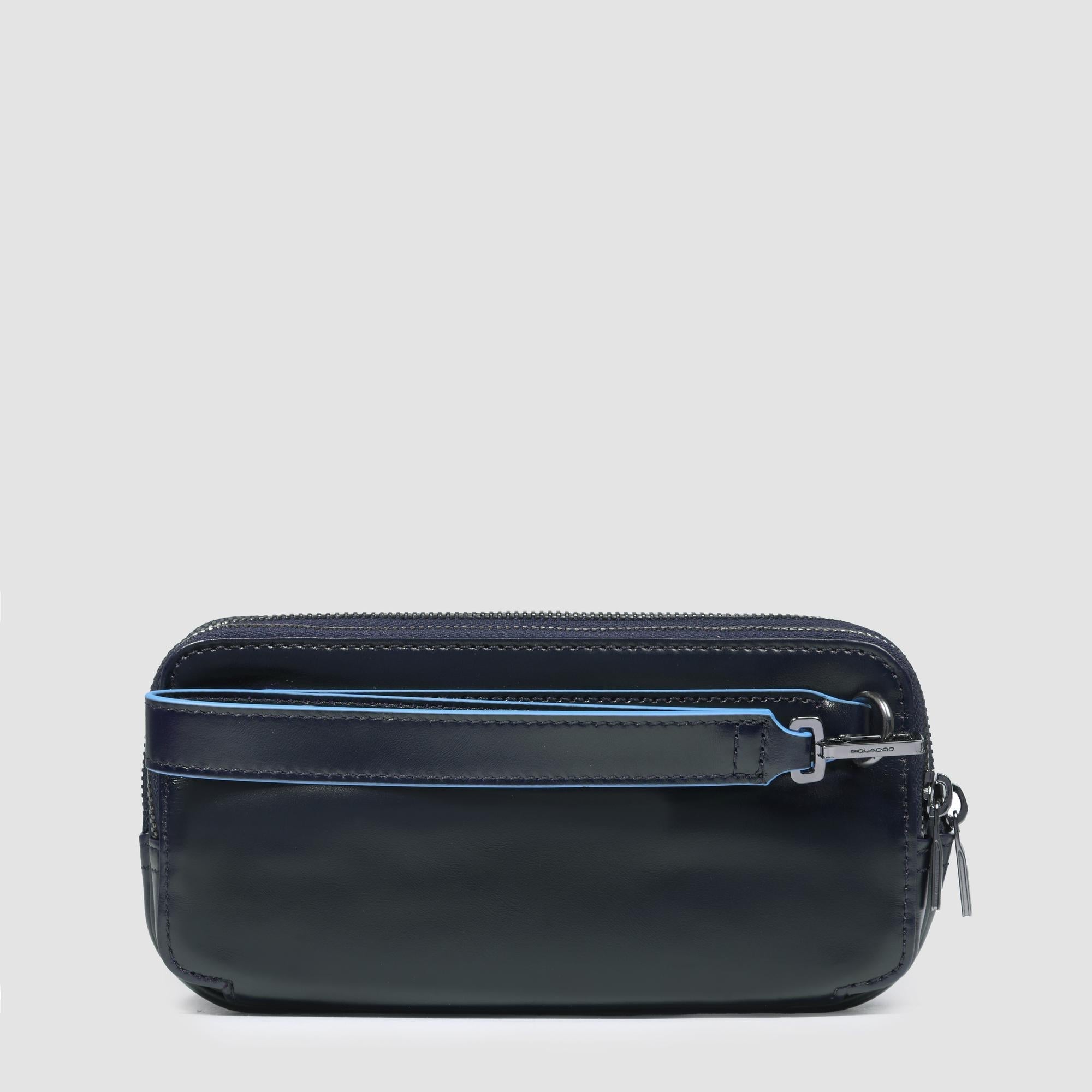 Leather men's clutch with three dividers, removable wrist strap and RFID protection