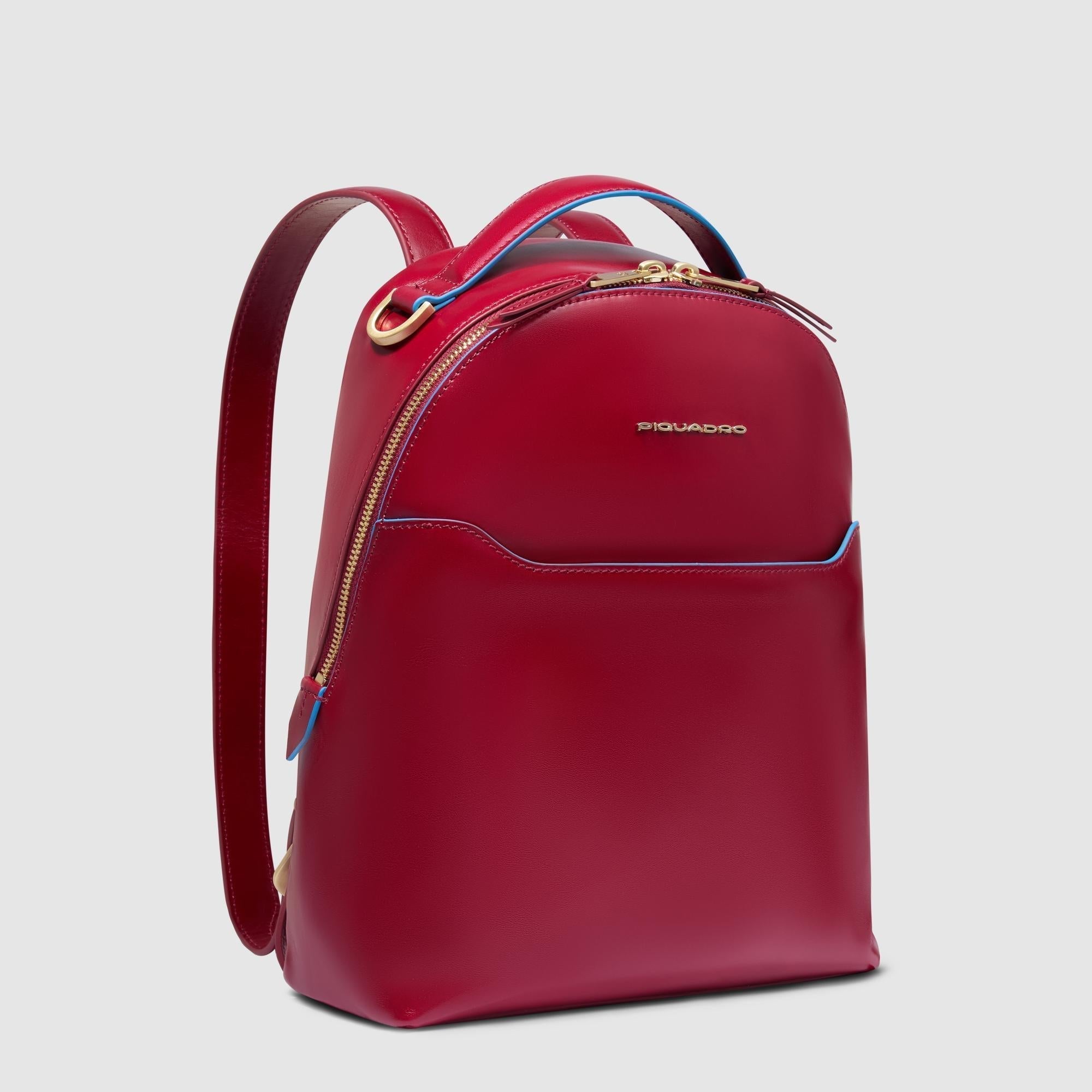 Small size, leather women's backpack with iPad®mini compartment RFID protection