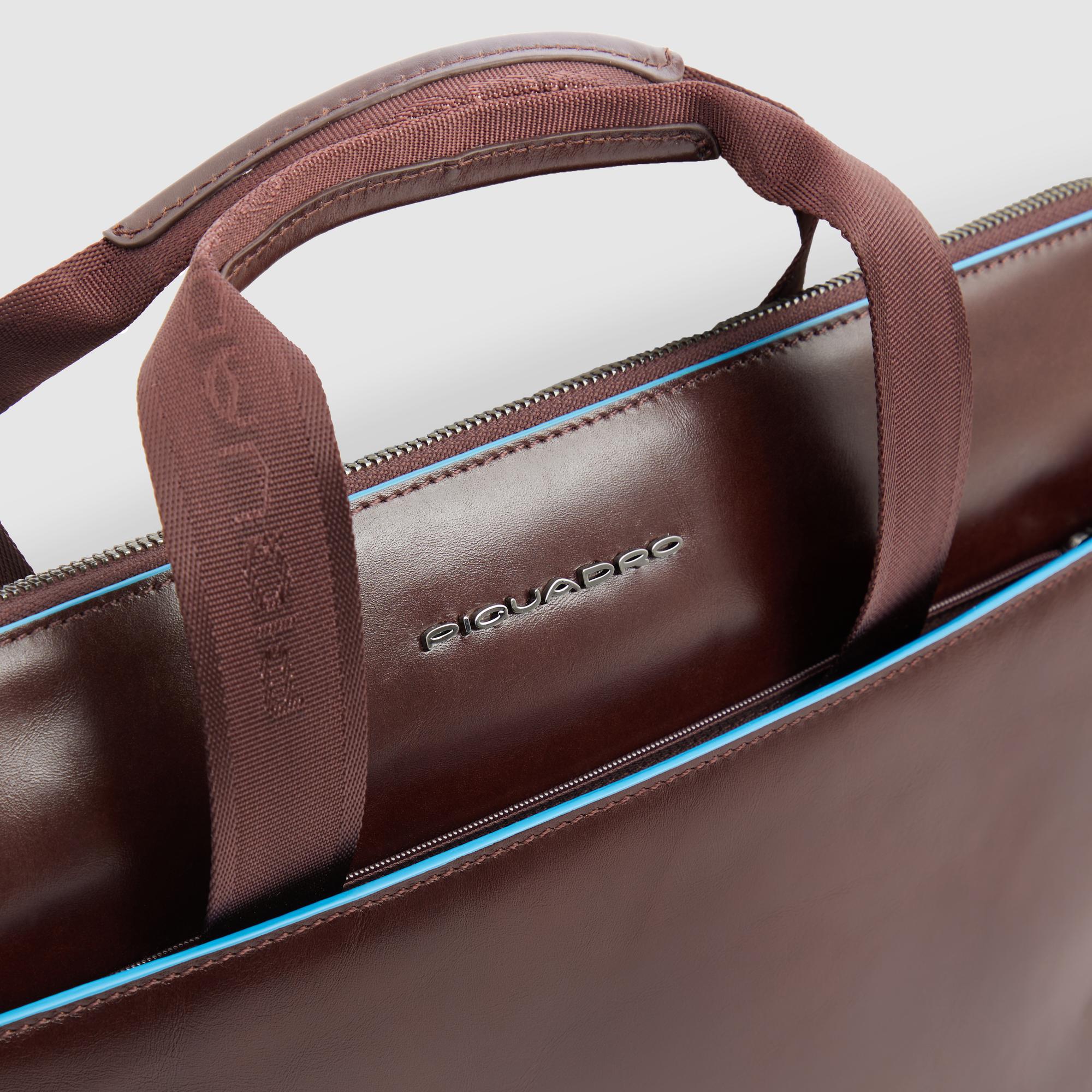 The Blue Square collection is made of tanned calfskin. This traditional tanning method maintains the beauty of the leather over the years. The raw cut edges that are hand-painted in blue enliven the business character of the collection and are a highly recognisable distinctive element.