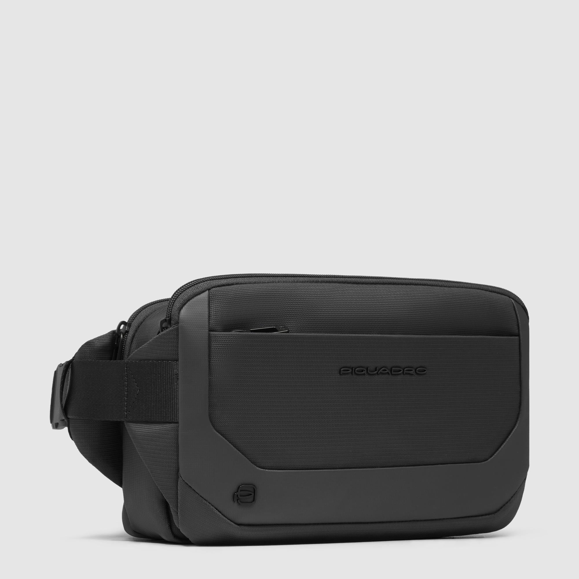 Sac banane extensible en tissu recyclé et cuir avec poche pour bouteille, convertible en sac de poitrine
