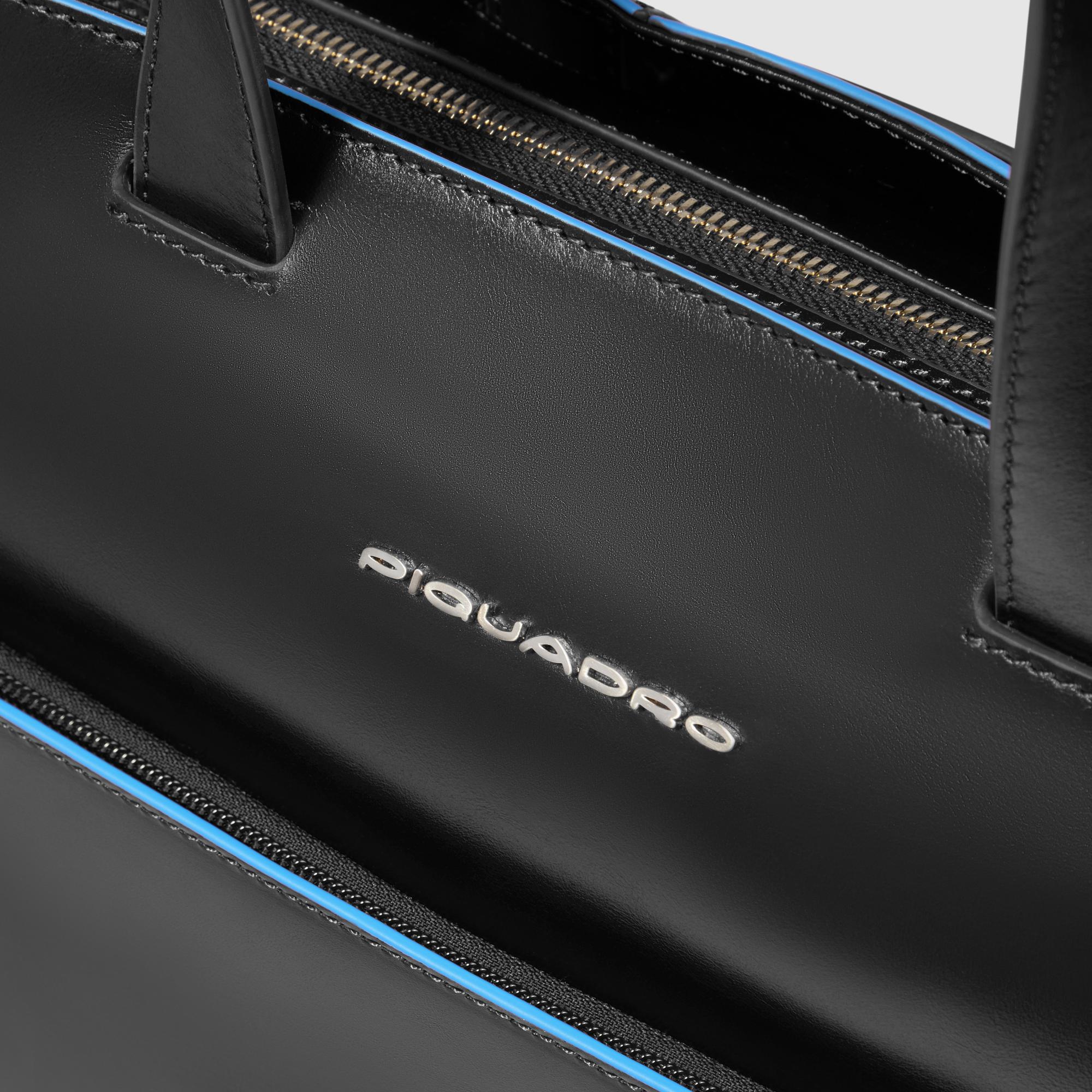 La collection Blue Square est réalisée en veau traité au tanin minéral. La beauté du cuir reste inaltérée pendant des années et des années grâce au système traditionnel de tannage. Les bords découpés à vif, peints à la main en bleu, rehaussent le caractère business de la collection et représentent un élément de distinction facilement reconnaissable.