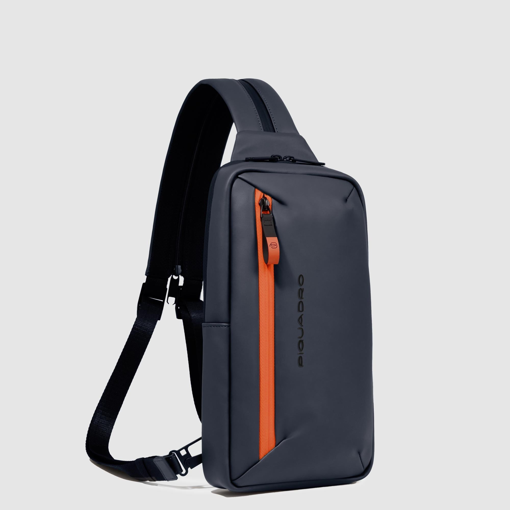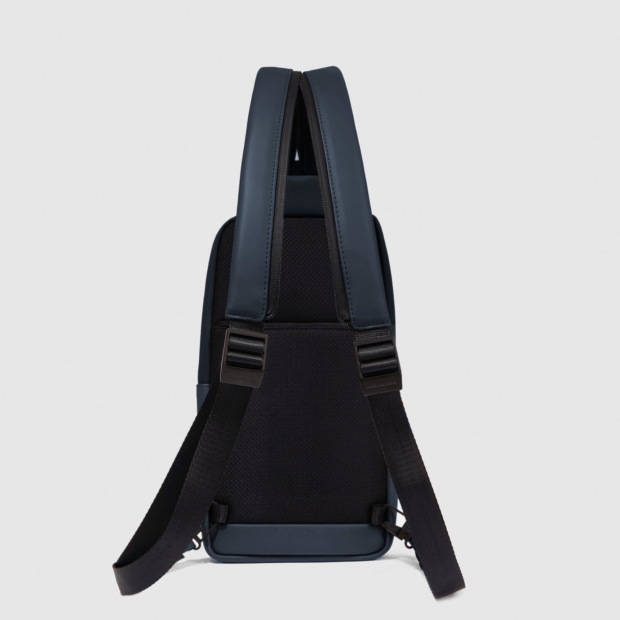Zaino monospalla porta iPad®mini in tessuto gommato resistente all'acqua con protezione RFID e tasca per Piquadro Smart Tracker