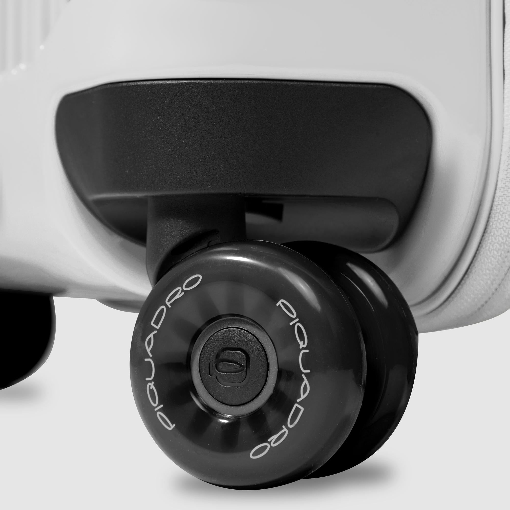 La collezione di valigie POP di Piquadro è un tripudio di colore e innovazione. Disponibili nei colori bianco, blu, verde, giallo e grigio, sono dotate di ruote scorrevoli e intercambiabili, acquistabili anche separatamente per dare un tocco di personalità al proprio bagaglio. Le valigie sono dotate anche di angolari che le proteggono dagli urti. Per rendere ogni articolo ancora più unico, le valigie POP sono personalizzabili con le proprie iniziali (max 3 caratteri), scegliendo il tag metallico nel colore preferito.
