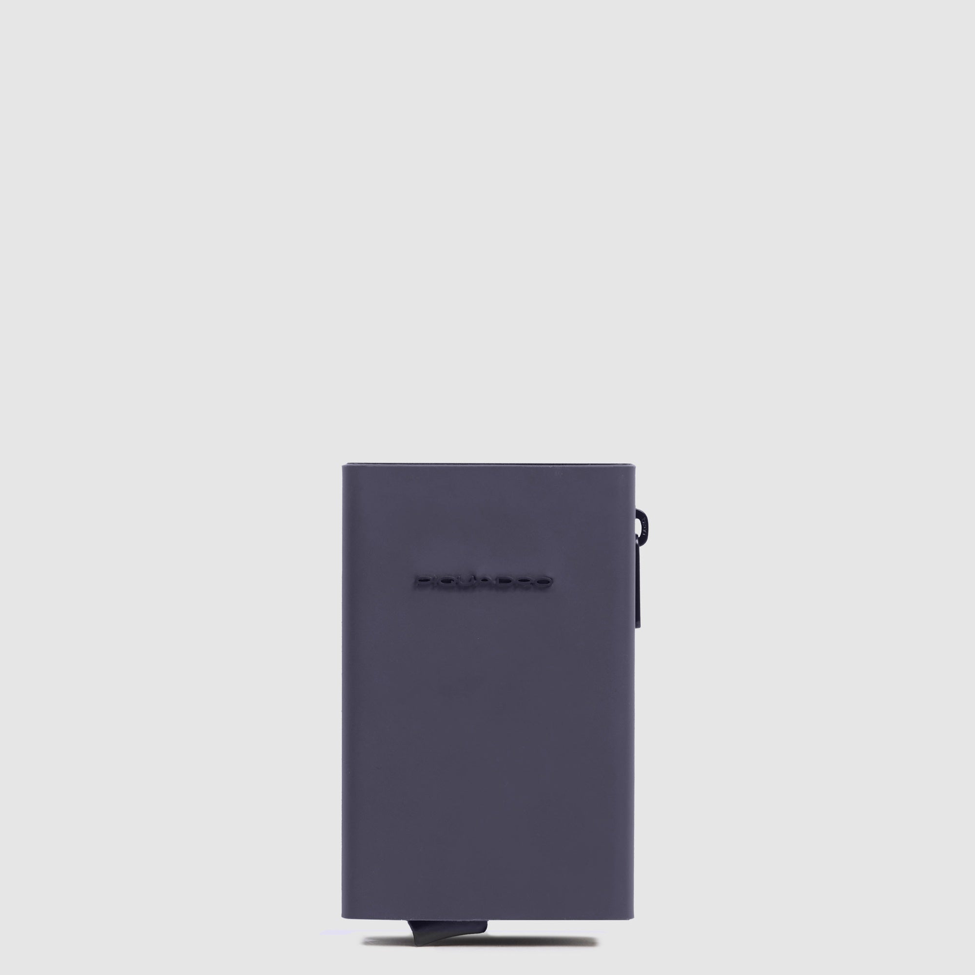 Compact wallet in rubberized, water resistant textile with pop-up card holder, zipped money pocket and RFID protection