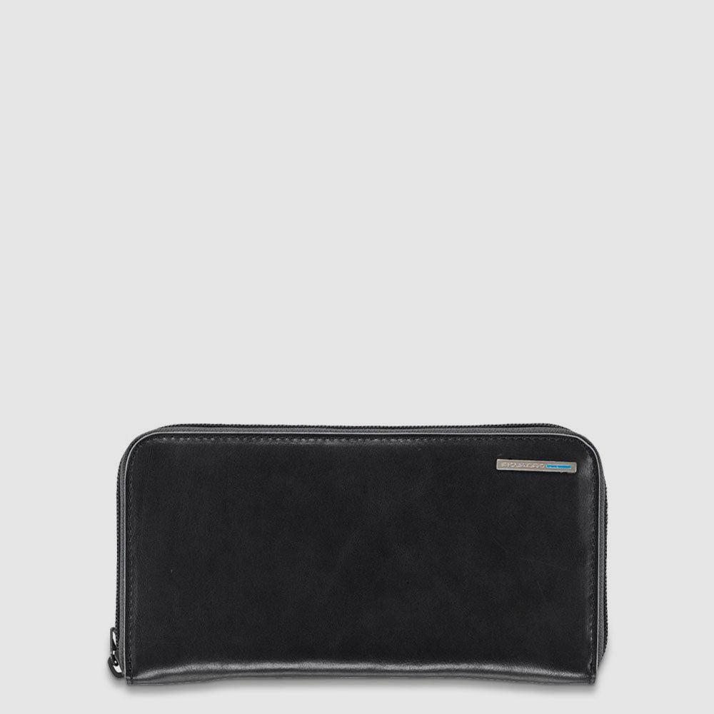 Portafogli donna grande zip-around in pelle, con quattro soffietti, porta monete, portacarte di credito e protezione RFID